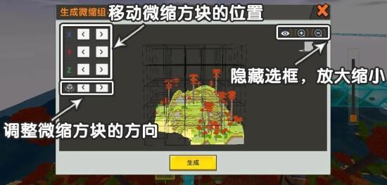 微缩组合装置可以直接选取范围并将范围内的方块批量进行微缩, 相信有聪明的小伙伴通过上次的爆料大致猜出新道具的功能了