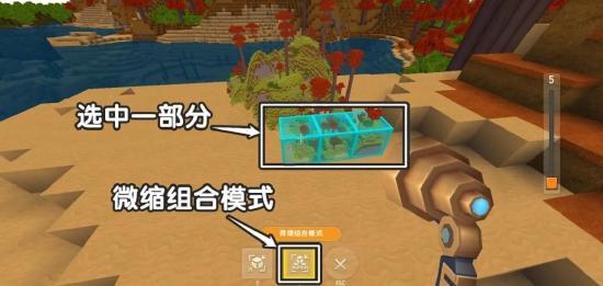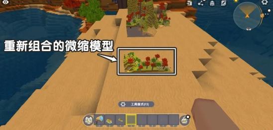 微缩组合模式不仅可以重新组合新道具生成的微缩模型,首先选取一块范围,在快捷栏都只占用一格位置